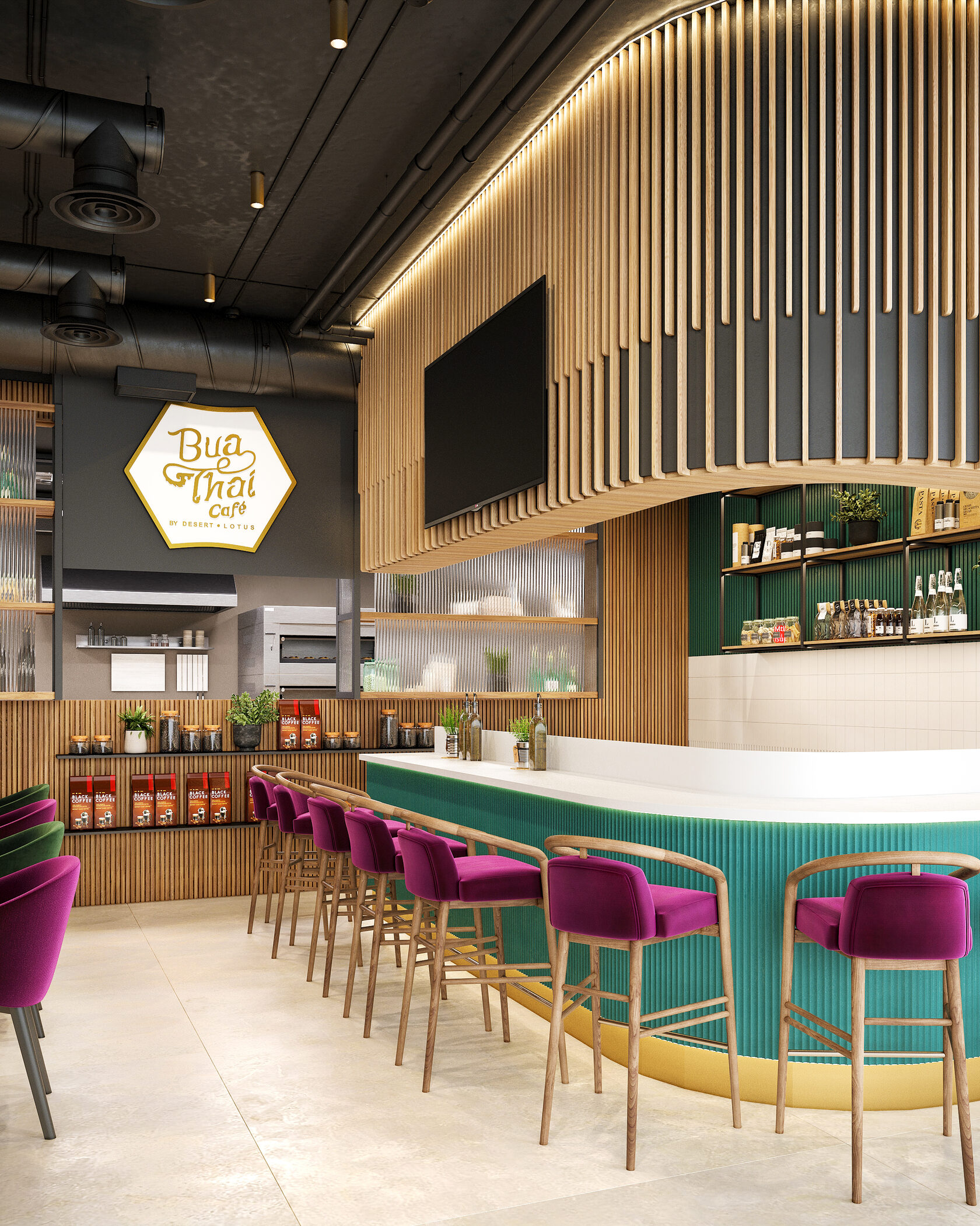 Современное азиатское кафе, расположенное в ОАЭ, выполнено в ярком и запоминающемся стиле с отсылками к тайской эстетике. Проект сочетает атмосферу уюта и концептуального дизайна с высокой функциональностью и адаптацией под местный рынок.